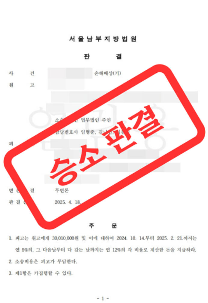 [불법행위 손해배상] 3천만원 전부 승소